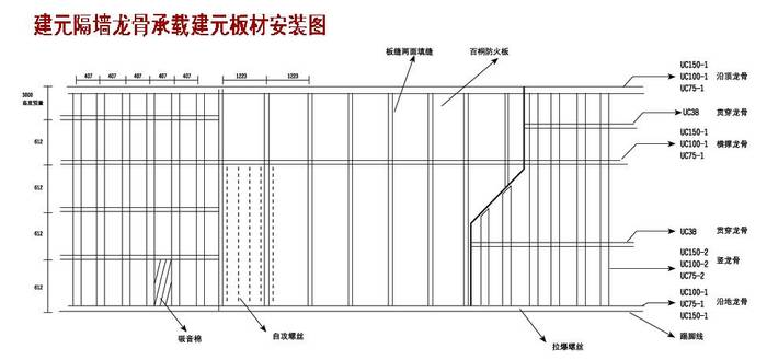 輕鋼龍骨墻體主要用于內(nèi)隔墻。當(dāng)用于分戶(hù)墻、走道、樓梯間等對(duì)隔聲、防火、防水、防盜及耐久性要求較高的部位時(shí),應(yīng)慎重選用板材品種和合理的墻體構(gòu)造。(請(qǐng)與我司技術(shù)支持部聯(lián)系)