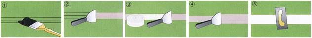 4.(為進(jìn)一步加強(qiáng)防裂效朿待上一道賦予完全干辿縿小時(shí),潮濕天氣時(shí)間會增加)后用賦子再薄抹一壽稍寬于接縫倒角區(qū)并略高于板雿