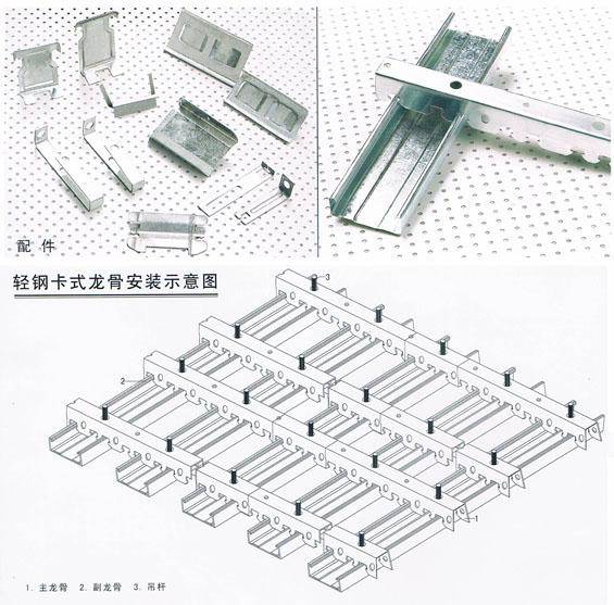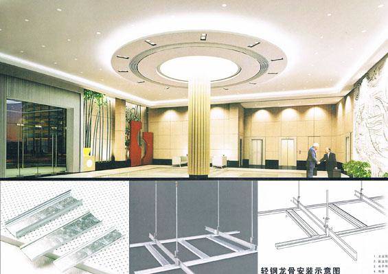輕鋼龍骨,是一種以鐵代木,具有高強(qiáng)、輕質(zhì)、防火、防腐特性。暗裝快捷,美觀大方。是現(xiàn)代理想的綠色環(huán)保材料。它能為不同檔次的豪華商廈、高級(jí)賓館、大型自選購物商場(chǎng)、機(jī)場(chǎng)候機(jī)大樓、地鐵站、銀行現(xiàn)代化辦公樓和大型凈化廚房,以及時(shí)尚高雅民宅的天花吊頂,墻體等裝飾布局,提供高貴典雅的新型裝飾材料。