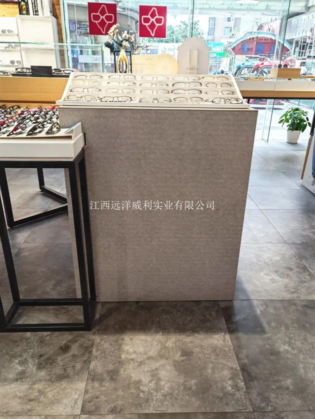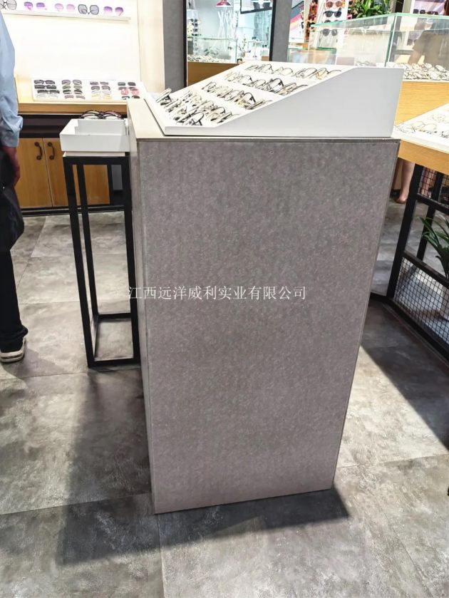 | Interior decoration of chain optical shop -- light grey application of water wall rock slab |