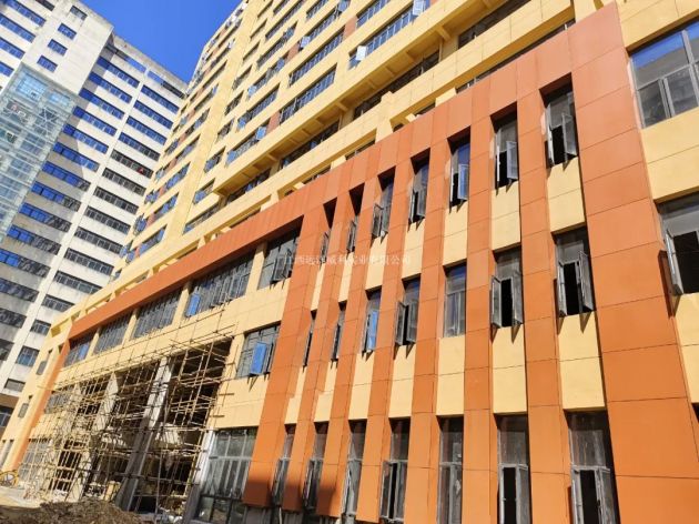 Jingdezhen No. 2 Hospital case:Jingdezhen No. 2 Hospital product:biyan through colored fiber cement board thickness;12mm area: exterior panel