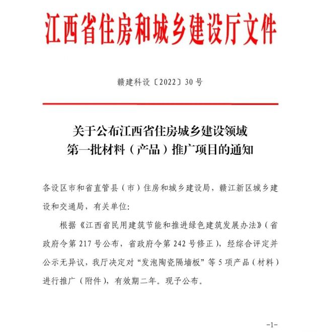 [Good news! Promotion by the Department of Housing and urban-rural Development] Ocean Wili fiber cement board/calcium silicate board won the first batch of promotion materials in the field of housing and urban-rural construction in Jiangxi Province