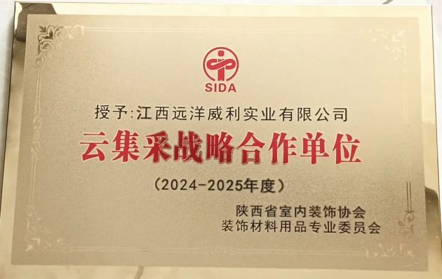 Jiangxi Yuanyang Weili Industrial Co., Ltd. has joined the Shanxi Provincial Interior Decoration Association and become a strategic centralized procurement cooperation unit of the association.