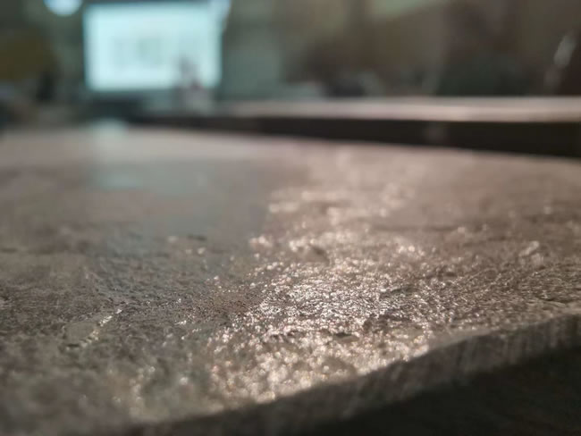 在讓砂巖、原石、水泥原材料質(zhì)感充分展現(xiàn)的理念下,以1220×2440大規(guī)格面世,厚度從6mm-20mm,通過RIS柔色技術(shù)和GIS細(xì)刻技術(shù)精細(xì)呈現(xiàn)工業(yè)水泥、人文劃痕、自然石刻紋三種元素的跨界相逢。自然紋理,質(zhì)樸素雅、耐人尋味,在近距離觀摩,多層次紋理纖毫畢現(xiàn)。