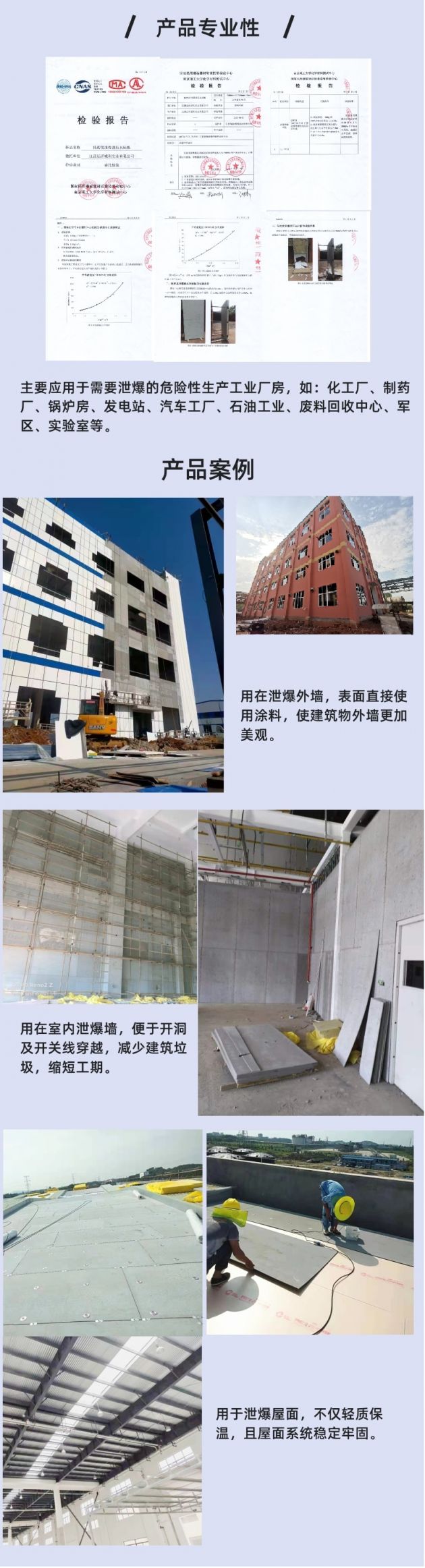 在工業(yè)建筑中廠房與倉(cāng)庫(kù)做防爆、泄爆、抗爆設(shè)計(jì)的目的:就是在于采取防爆措施,防止或減少爆炸事故的發(fā)生的結(jié)構(gòu)系統(tǒng)(泄爆系統(tǒng)、抗爆系統(tǒng))就是當(dāng)發(fā)生爆炸事故時(shí),最大限度地減輕其危害和造成的損失。遠(yuǎn)洋威利泄爆(壓)系統(tǒng)是一種低密度(泄爆板)墻體系統(tǒng)。由脆性的泄爆板及輕鋼龍骨共同組成,具有厚度薄、輕質(zhì)、防水、占地空間小和安裝方便等特點(diǎn);在爆炸發(fā)生時(shí)產(chǎn)生的能量和沖擊浪能在很短的時(shí)間之內(nèi)泄散,碎片呈塊狀或粉末狀,不易形成二次傷害,能保障人身安全。