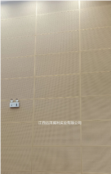 產(chǎn)品應(yīng)用優(yōu)勢(shì) (一)出色的吸音功能,提升空間聲學(xué)環(huán)境 灰硅飾面板(穿孔)采用獨(dú)特的穿孔設(shè)計(jì),結(jié)合遠(yuǎn)洋威利低密度灰硅基層板的材料特性,形成高效吸音結(jié)構(gòu),其表面的細(xì)密穿孔與板材內(nèi)部的微孔結(jié)構(gòu),能夠有效吸收不同頻率的聲音,減少聲音反射與共振。在此次多媒體空間吸音墻的項(xiàng)目應(yīng)用中,該材料大幅降低了空間內(nèi)的回聲干擾,無(wú)論是演講時(shí)清晰的語(yǔ)音傳遞,還是影音播放時(shí)震撼的音效呈現(xiàn),為使用者帶來(lái)了沉浸式的視聽(tīng)體驗(yàn)。 (二)施工便利,高效推進(jìn)項(xiàng)目進(jìn)程 相比傳統(tǒng)吸音材料復(fù)雜的安裝工藝,灰硅飾面板(穿孔)具有施工便捷的顯著優(yōu)勢(shì):其板材規(guī)格標(biāo)準(zhǔn),可根據(jù)墻面尺寸進(jìn)行定制加工,減少現(xiàn)場(chǎng)切割損耗,安裝過(guò)程通過(guò)簡(jiǎn)單的拼接、自攻螺絲固定方式,即可快速完成墻面鋪設(shè)。施工團(tuán)隊(duì)利用這一特點(diǎn),有效縮短了施工周期,降低了人工成本,同時(shí)減少了施工過(guò)程中對(duì)周邊環(huán)境的影響,確保大會(huì)堂能夠盡快恢復(fù)使用,滿足市民的文化活動(dòng)需求。 (三)綠色環(huán)保,守護(hù)公共健康 在環(huán)保意識(shí)日益增強(qiáng)的今天,公共建筑的材料選擇尤為關(guān)鍵;夜栾椕姘澹ù┛祝┎捎铆h(huán)保型原材料制作,經(jīng)權(quán)威機(jī)構(gòu)檢測(cè),其甲醛釋放量遠(yuǎn)低于國(guó)家標(biāo)準(zhǔn),在長(zhǎng)沙縣市民大會(huì)堂的應(yīng)用中,該材料不僅為使用者營(yíng)造了健康安全的室內(nèi)環(huán)境,也符合公共建筑在環(huán)保方面的高,體現(xiàn)了項(xiàng)目團(tuán)隊(duì)對(duì)可持續(xù)發(fā)展理念的踐。 (四)聲學(xué)與美學(xué)的統(tǒng)一性,打造功能與視覺(jué)的雙重價(jià)值 灰硅飾面板(穿孔)通過(guò)精密的穿孔孔徑與排列設(shè)計(jì),將聲學(xué)性能與空間美學(xué)深度融合,其表面的穿孔圖案可根據(jù)室內(nèi)設(shè)計(jì)風(fēng)格定制為幾何矩陣、漸變韻律等造型,不僅能通過(guò)孔結(jié)構(gòu)與板材內(nèi)部微孔形成高效吸音體系,還能以規(guī)律性的孔洞排列構(gòu)成視覺(jué)效果,使吸音墻成為空間內(nèi)的藝術(shù)裝置,穿孔設(shè)計(jì)結(jié)合燈光效果,在解決回聲問(wèn)題的同時(shí),為多空間增添了現(xiàn)代藝術(shù)感,可實(shí)現(xiàn) “降噪即造景” 的設(shè)計(jì)理念。 (五)表面樣式多元化,適配多元場(chǎng)景需求 支持多樣化表面處理工藝,可滿足不同建筑風(fēng)格的美學(xué)要求: 色彩定制:通過(guò)覆膜工藝實(shí)現(xiàn)乳白、木紋等基礎(chǔ)色系,或根據(jù)空間主色調(diào)調(diào)配專屬色號(hào); 紋理質(zhì)感:表面可呈現(xiàn)木紋、石紋、布紋、金屬拉絲等肌理,增強(qiáng)觸覺(jué)與視覺(jué)的層次感; 圖案定制:可在穿孔基礎(chǔ)上疊加雕刻工藝,嵌入城市文化符號(hào)、藝術(shù)紋樣等個(gè)性化圖案,使吸音墻成為兼具功能與文化屬性的空間標(biāo)識(shí)。
