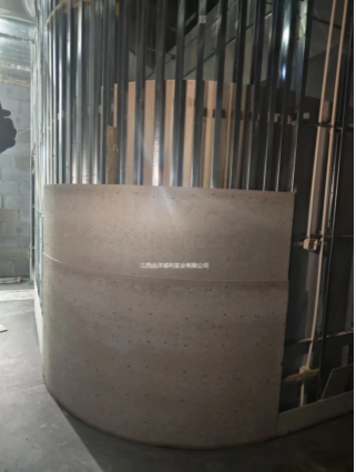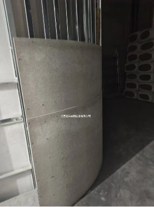 外弧,直接成型;自攻螺絲固定在龍骨上方,邊緣打釘板材不爆邊,不破裂!