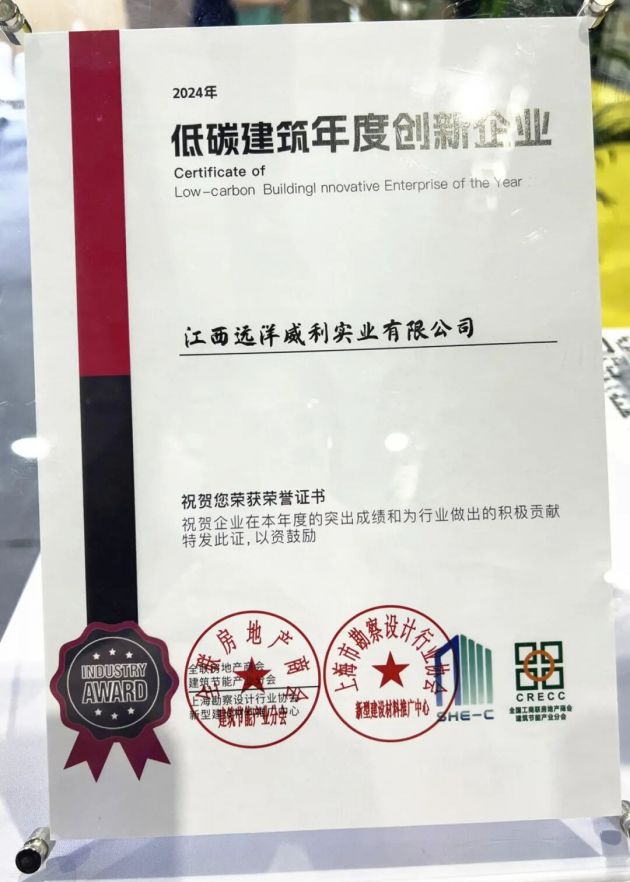 江西遠洋威利實業(yè)有限公司一直積極響應國家“雙碳”政策,致力于綠色建筑材料的研發(fā)、生產與應用。公司緊跟行業(yè)發(fā)展趨勢,不斷加大技術創(chuàng)新力度,推動低碳建筑材料的研發(fā)與應用。其獨特的可以像木材一樣使用的A級防火無機板—低密度灰硅基層板不僅具有優(yōu)異的低碳環(huán)保性能,還具備防火A1級、平衡溫濕度、好施工等特點,深受市場好評。 此次榮獲“2024年低碳建筑年度創(chuàng)新企業(yè)”榮譽,不僅是遠洋威利在低碳建筑領域多年努力的結果,更是對整個行業(yè)的激勵。隨著國家“雙碳”政策的深入推進,綠色建筑和低碳建筑將成為建筑行業(yè)的主流趨勢。遠洋威利將繼續(xù)秉承“低碳環(huán)保、防火未燃、可持續(xù)發(fā)展”的理念,不斷創(chuàng)新、進取,為推動綠色建筑行業(yè)的發(fā)展貢獻更多的力量。 未來,遠洋威利實將繼續(xù)積極響應國家“雙碳”政策,加大技術創(chuàng)新力度,推動低碳建筑材料的研發(fā)與應用,為城市的可持續(xù)發(fā)展貢獻更多智慧與力量。同時,公司也期待與更多的企業(yè)、科研機構和高校合作,共同推動綠色建筑行業(yè)的蓬勃發(fā)展,為實現(xiàn)國家“雙碳”目標貢獻力量。 江西遠洋威利實業(yè)有限公司:一家從建筑材料領域起步,并在行業(yè)中具有深遠影響力的企業(yè)。自2001年成立以來,遠洋威利專注于綠色防火建筑材料的制造,以創(chuàng)新驅動行業(yè)發(fā)展。