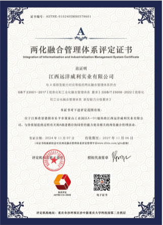 祝賀!遠(yuǎn)洋威利通過兩化融合管理體系認(rèn)證 江西遠(yuǎn)洋威利實(shí)業(yè)有限公司正式通過國家工業(yè)和信息化部兩化融合管理體系認(rèn)證,榮獲《兩化融合管理體系評定證書》,這一認(rèn)證標(biāo)志著遠(yuǎn)洋威利在信息化與工業(yè)化深度融合領(lǐng)域取得重要突破,為行業(yè)智能化轉(zhuǎn)型樹立了新標(biāo)桿。