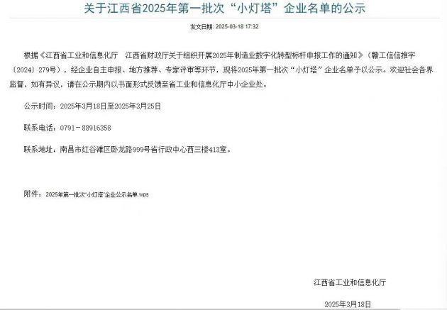 喜訊傳來|江西遠洋威利入選江西省“小燈塔”企業(yè)近日,江西省工業(yè)和信息化廳公示了2025年第一批“小燈塔”企業(yè)名單,江西遠洋威利實業(yè)有限公司名列其中,這不僅標(biāo)志著遠洋威利在數(shù)字化轉(zhuǎn)型發(fā)展道路中邁上新臺階,更是對遠洋威利多年來在企業(yè)發(fā)展、技術(shù)創(chuàng)新、數(shù)字化轉(zhuǎn)型等多方面努力的高度認可。
