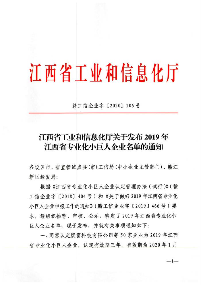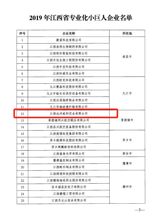 | 遠(yuǎn)洋威利榮獲“2019年江西省專業(yè)化小巨人企業(yè)”稱號(hào) |